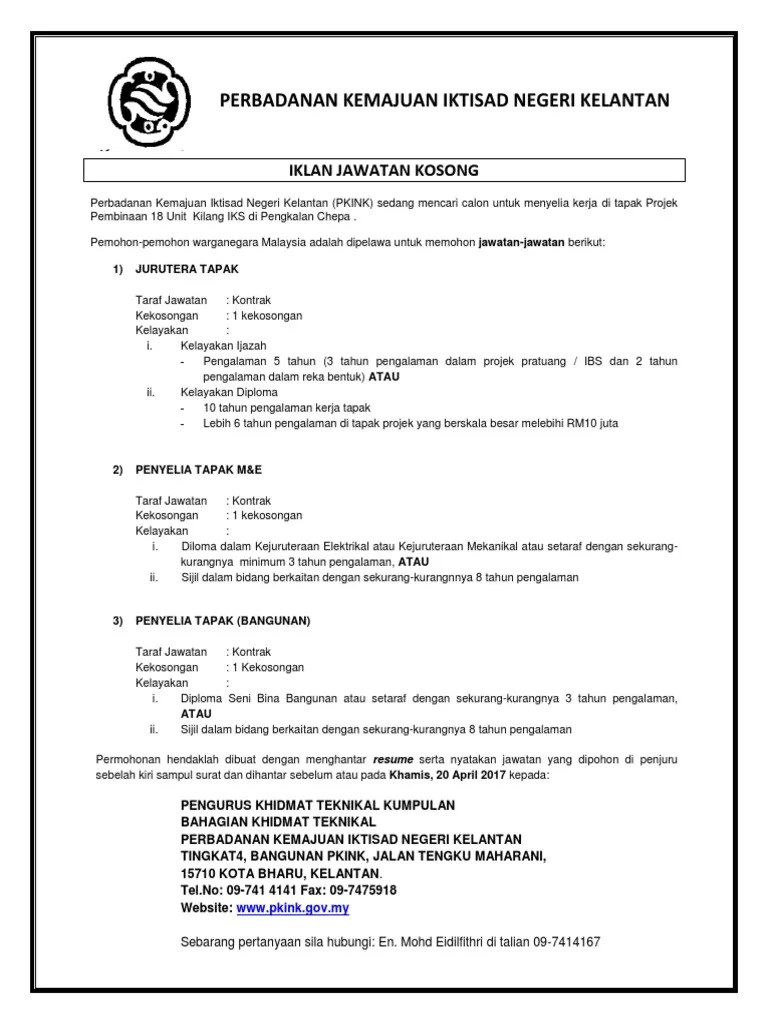 Jawatan kosong di lembaga kemajuan kelantan selatan kesedar 26 oktober 2017 kerja kosong 2021 jawatan . Tercatat dalam bulan jan 2022 iklan kerja kosong di kelantan untuk umur 17 2017 ini, lebih dari 1000 orang mencari infonya. Tawaran adalah dipelawa daripada warganegara malaysia yang berkelayakan untuk memohon .